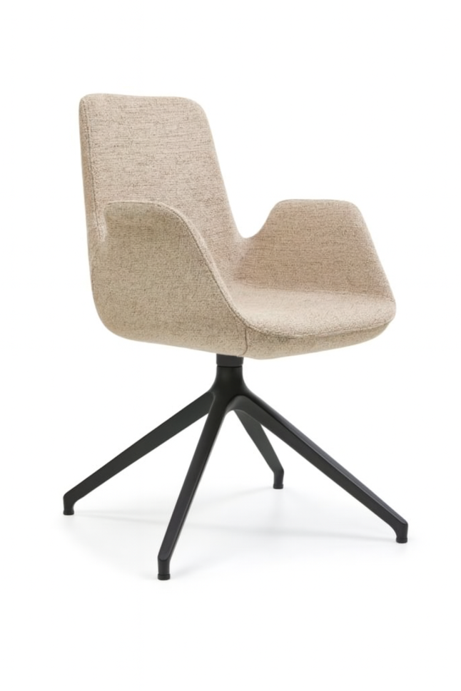 Въртящ се Стол с подлакътници, масивна конструкция от ясен, седалка и облегалка с тапицерия. Избор на тапицерия и цвят на краката. (метал)