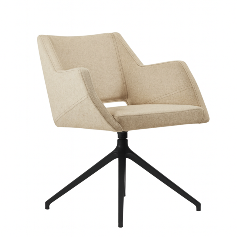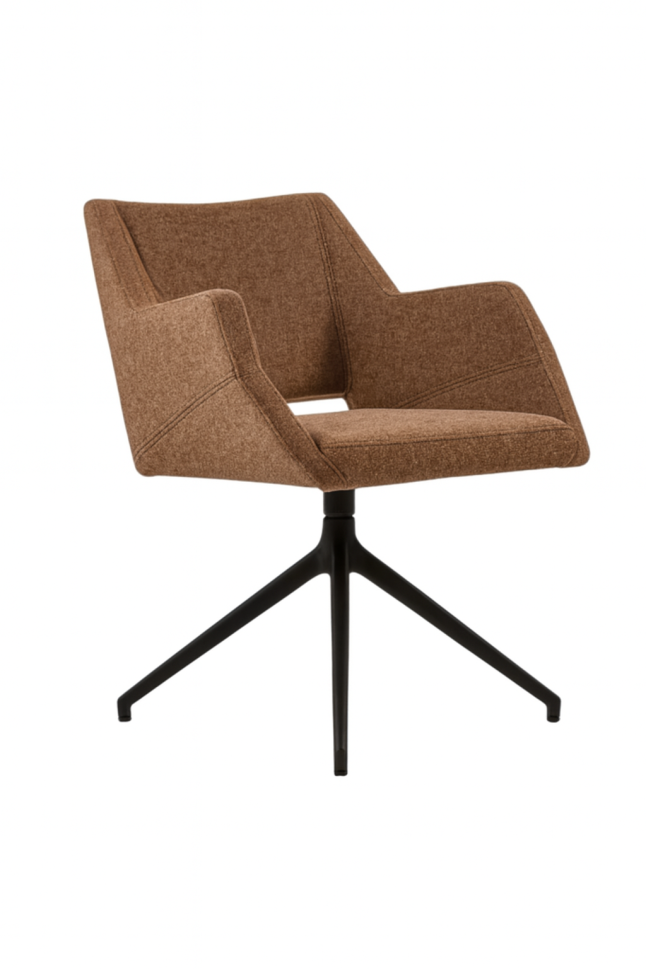 Въртящ се Стол с подлакътници, масивна конструкция от ясен, седалка и облегалка с тапицерия. Избор на тапицерия и цвят на краката. (метал)