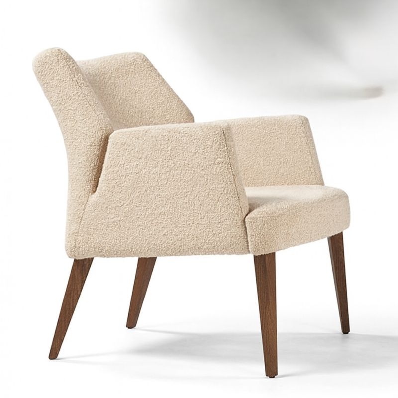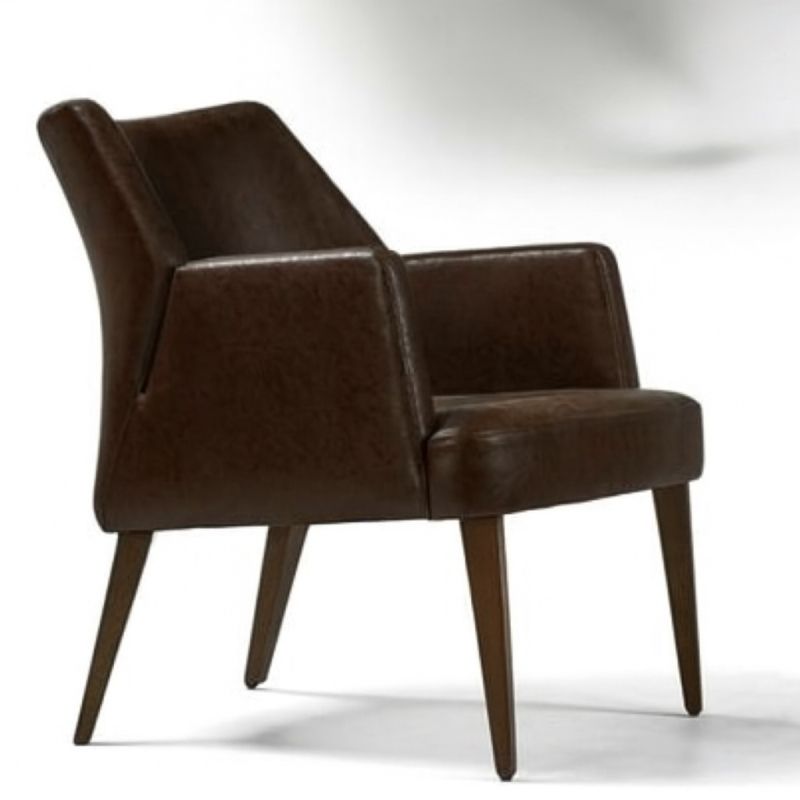 Кресло с подлакътници, масивна конструкция от ясен, тапицирана седалка и облегалка. Избор на тапицерия и цвят на краката.