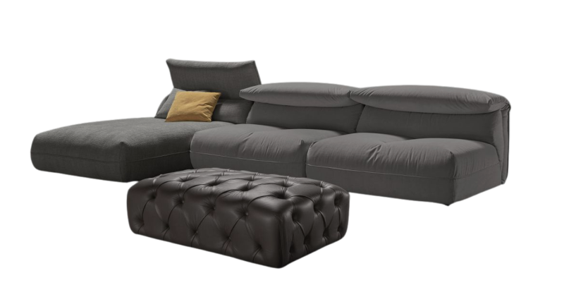 Дизайнерски диван с изцяло сваляеми калъфи. Конфигуриране според посочените Модули. Избор на дамаски по каталог. ВЪЗГЛАВНИЦА ЗА СЯДАНЕ: ПОЛИУРЕТАНОВА ПЯНА ПЛЪТНОСТ 35 KG/M3 ПОКРИТА С CLIMASOFT ВЪЗГЛАВНИЦА ЗА ГРЪБ: ПОЛИУРЕТАНОВА ПЯНА ПЛЪТНОСТ 24 KG/M3 ПОКРИТА С CLIMASOFT