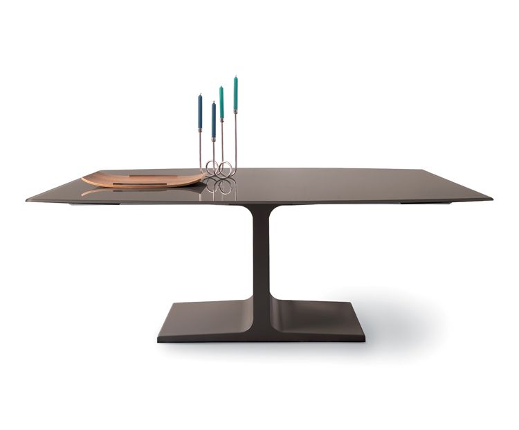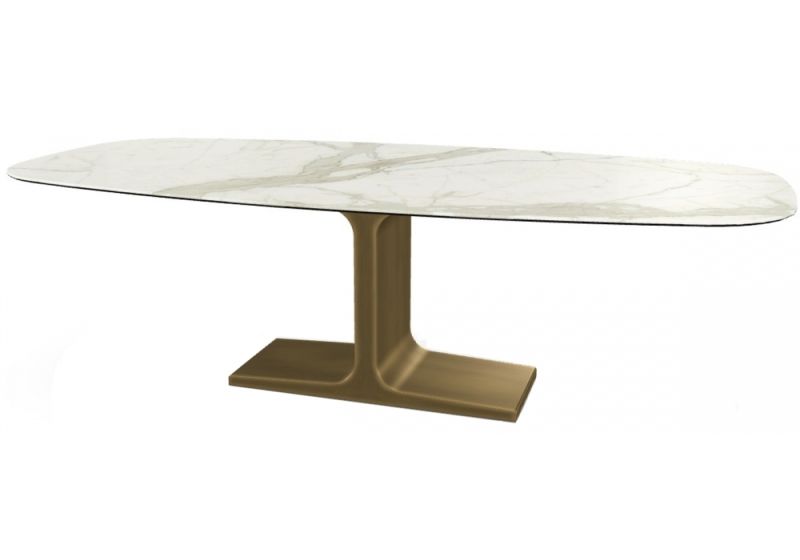 Трапезна маса с основа от матирана неръждаема стомана,