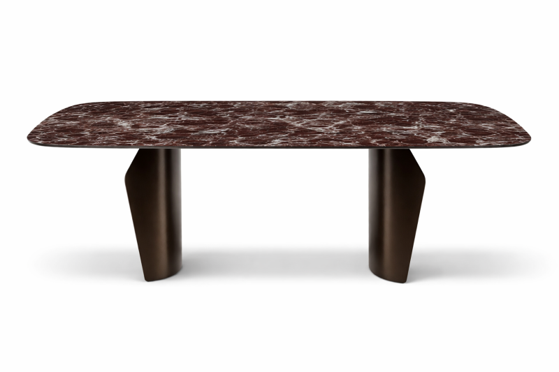 Основните характеристики на Flame са нейните хармонични форми и леки, криволичещи обеми. Формата и функцията са перфектно изразени в тази маса: обширни възможности за персонализиране според вашите вкусове, нужди и настроението на пространството във Вашият Дом. Плотът се предлага в редица покрития – от дърво до керамика и мрамор – и можете да избирате от различни метални опции за основата. Предлага се и дървена основа за тази модерна маса (Flame Wood).