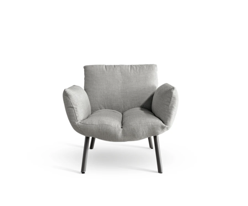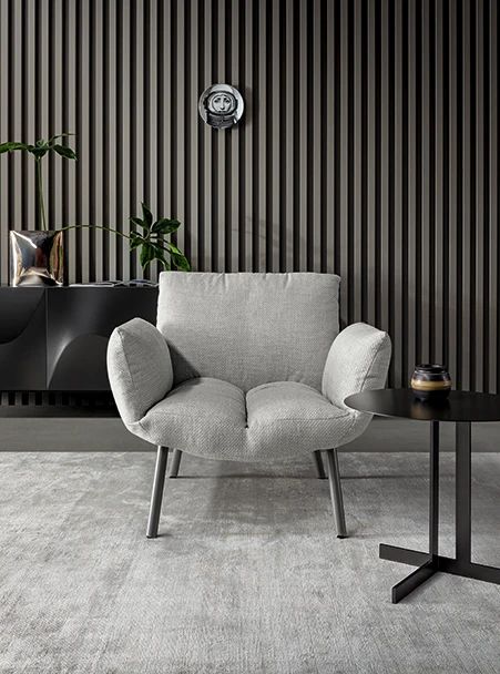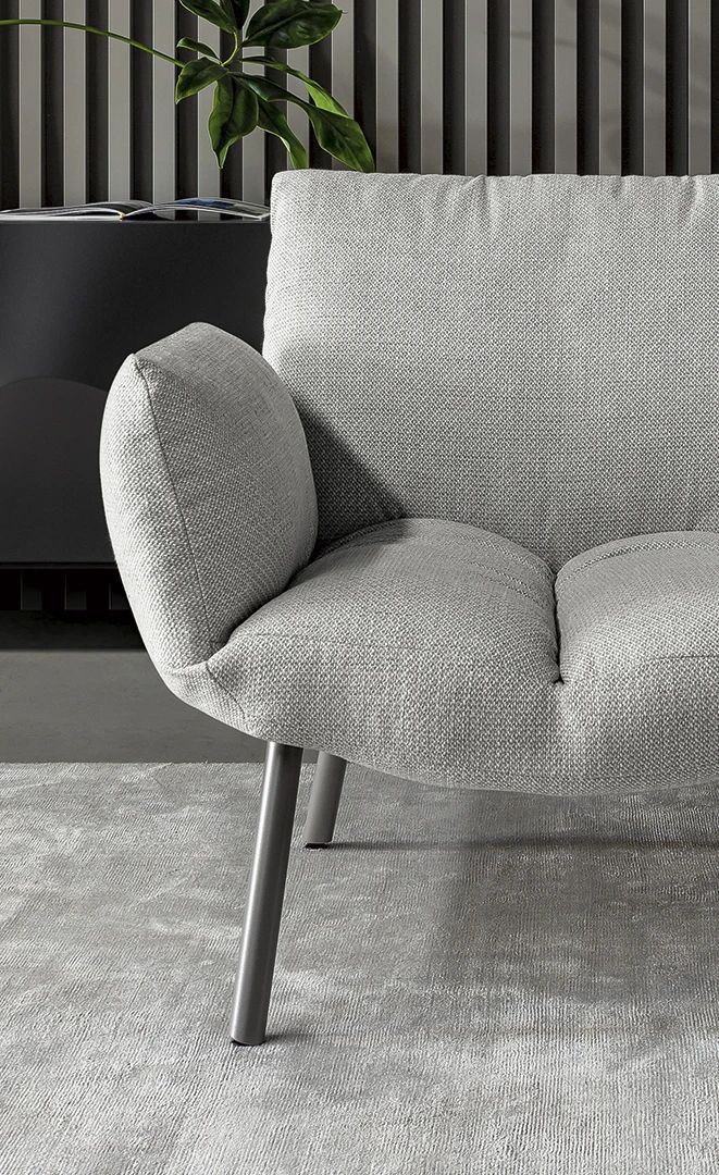 Основните компоненти на Pil са възглавницата на облегалката и възглавницата на седалката. Последният има гънка в средата, създадена да генерира обгръщащ ефект, който физически и визуално подчертава усещането за мекота. Основата има крака от боядисан метал или с елегантни покрития. Колекцията Pil, в допълнение към креслото, включва и серия от координирани седалки: Pil, (стол), Pil up (стол с висока облегалка), Miss Pil (стол с подлакътници), Miss Pil up (стол с висока облегалка и подлакътници) и Pil също (табуретка).
