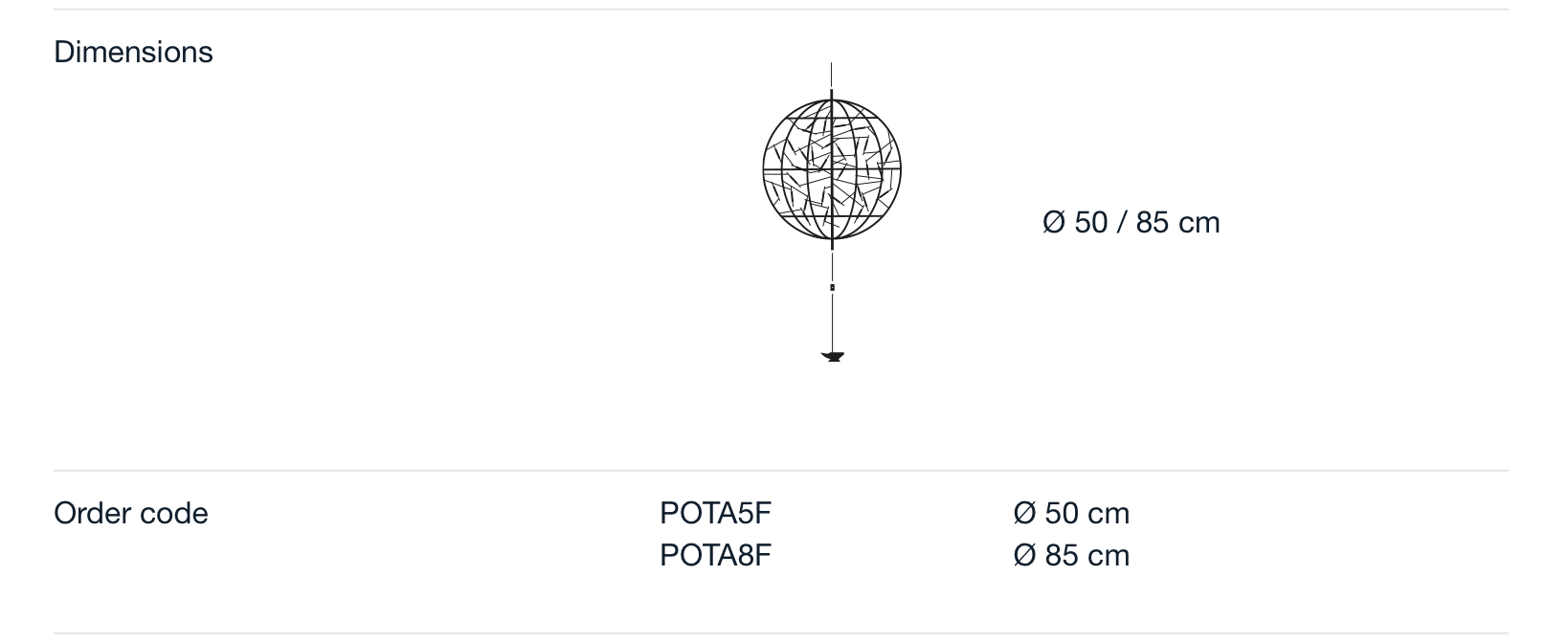 Източник на светлина Ø 50 см: LED модул 18x0,7W 24V / номинална мощност 12,6W / енергиен клас D / лумен 2430 / K 2700 / CRI 91 Ø 85 см: LED модул 36x0,7W 24V / номинална мощност 25,2W / енергиен клас D / лумен 4860 / K 2700 / CRI 91 Регистриран източник на светлина по EPREL Захранване 110-240V* Щепселен драйвер с димер (последна стъпка с памет) * Щепселният драйвер 110-240V се доставя с електрически щепсел, подходящ само за пазара, за справка. Моля, уточнете на етап поръчка, ако предназначението на продукта се различава от вашия стандарт.