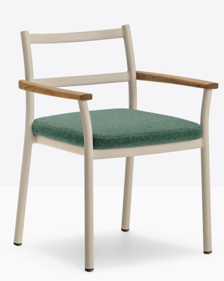 Стол с подлакътници, метална конструкция в цветове по избор от каталог на фабриката