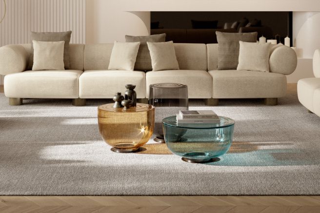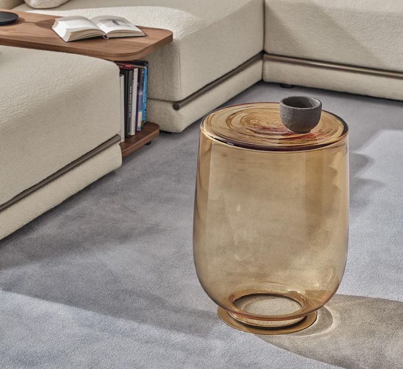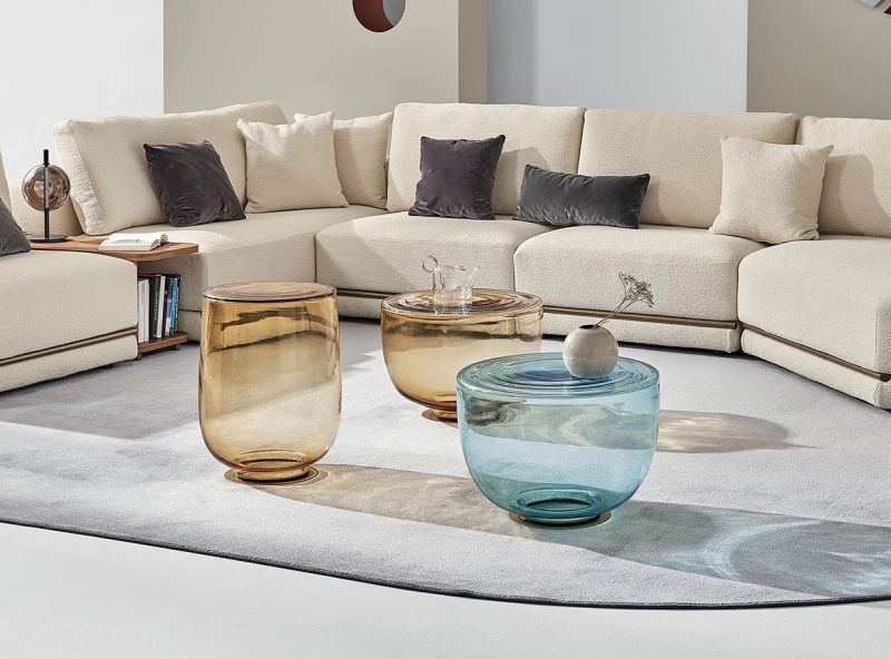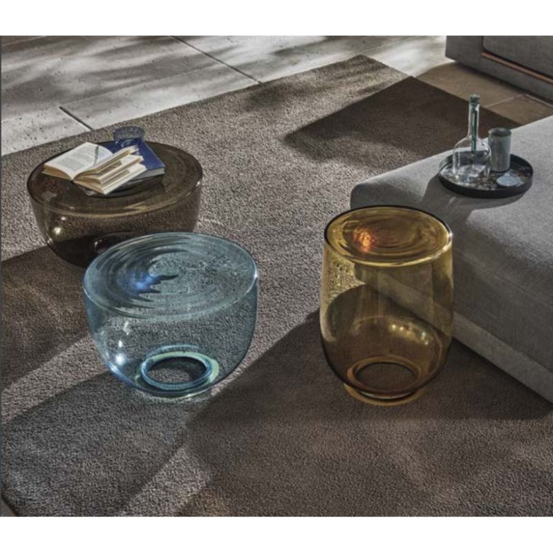 Холна маса с метална основа от тъмен месинг M028 и ръчно плаващо стъкло.