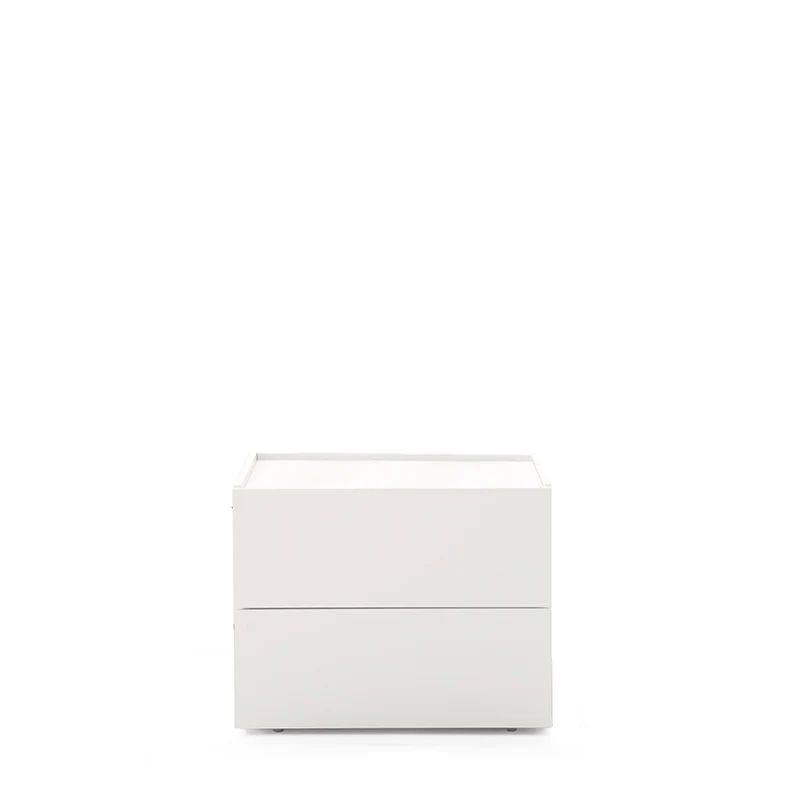 ATLANTE 2 DRWRS NIGHTSTAND - WHITE MATT AND HIGH GLOSS LACQUER GLASS.