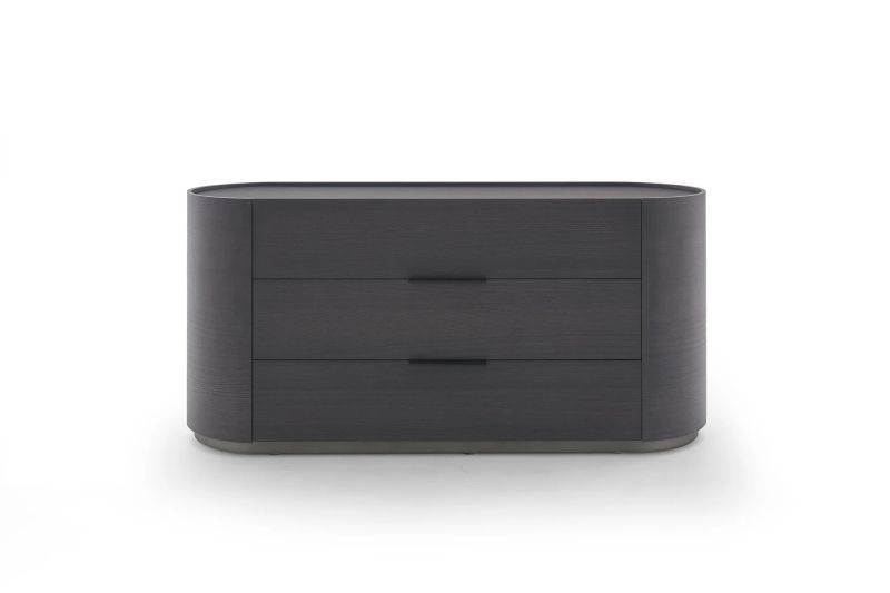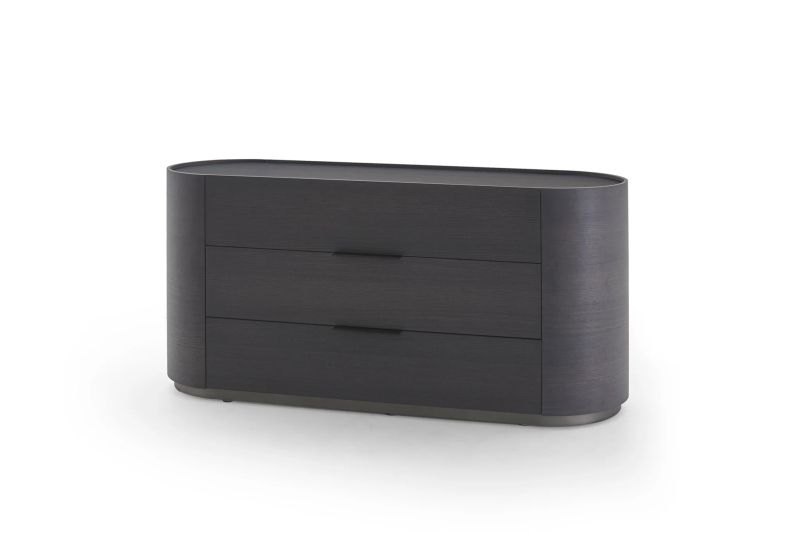 DEDALO 3 DRWRS DRESSER - DARK GREY ASH/TITANIUM MATT PLINTH/BLACK HARD LEATHER HANDLE
