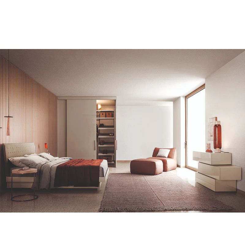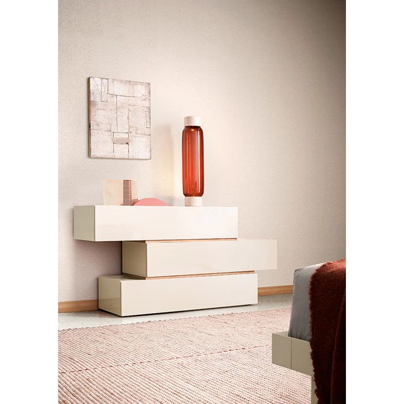 С елегантния си, линеен дизайн, People е серия скринове и нощни шкафове, предлагащи множество опции по отношение на аранжировки, размери и стилове. Прави или изместени, стоящи на пода или окачени на стена, те обзавеждат спалнята със своя модерен, изискан вид. Бляскав щрих се придава чрез добавяне на лакирани, метални или дървени вложки към аранжиментите. Фронтовете са без дръжки и са снабдени със странични канали за отваряне на чекмеджетата.