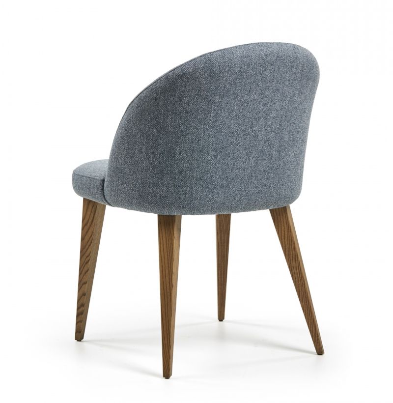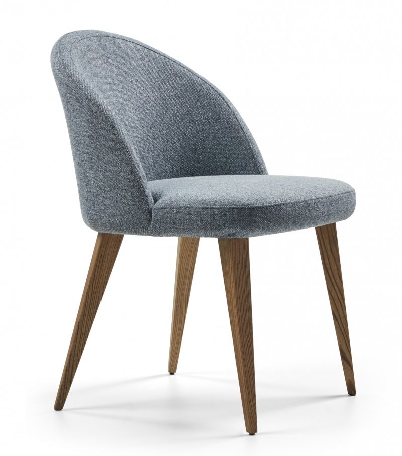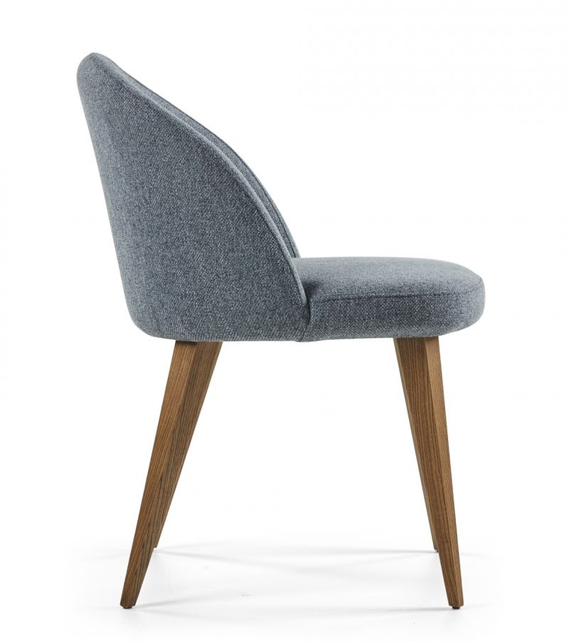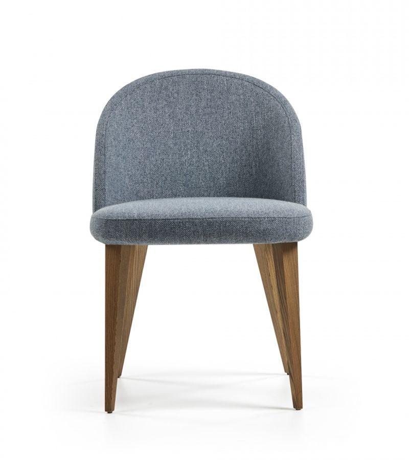 Стол без подлакътници, масивна конструкция от ясен, седалка и облегалка с тапицерия. Избор на тапицерия и цвят на краката.