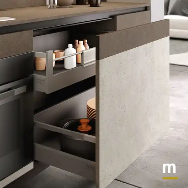 Най-добрата интерпретация идва чрез детайлите: стенни шкафове и врати с нова естетика, панели и плотове с изящни покрития, дръжки и много други са съставките на този модел.