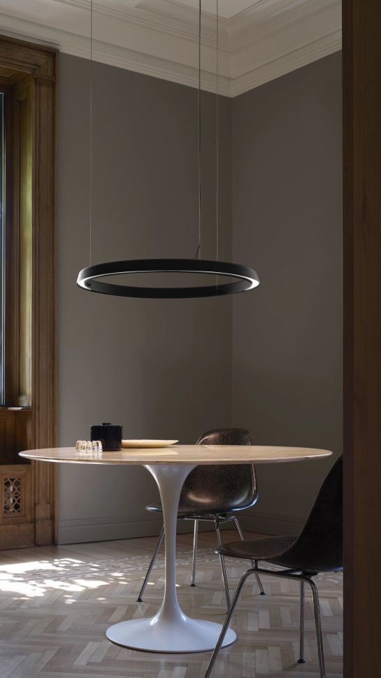 Като продължение на семейството Compendium, Circle е лампа с поетична природа и есенциален дизайн, чиято лекота се поддържа от LED технология, инсталирана така, че да позволява директно излъчване, когато е насочена надолу, или разсеяна светлина, когато е насочена нагоре. Възможно е също така да се комбинират до три пръстена с различен диаметър, за да се създадат различни конфигурации и светлинни сценарии с голямо визуално въздействие.