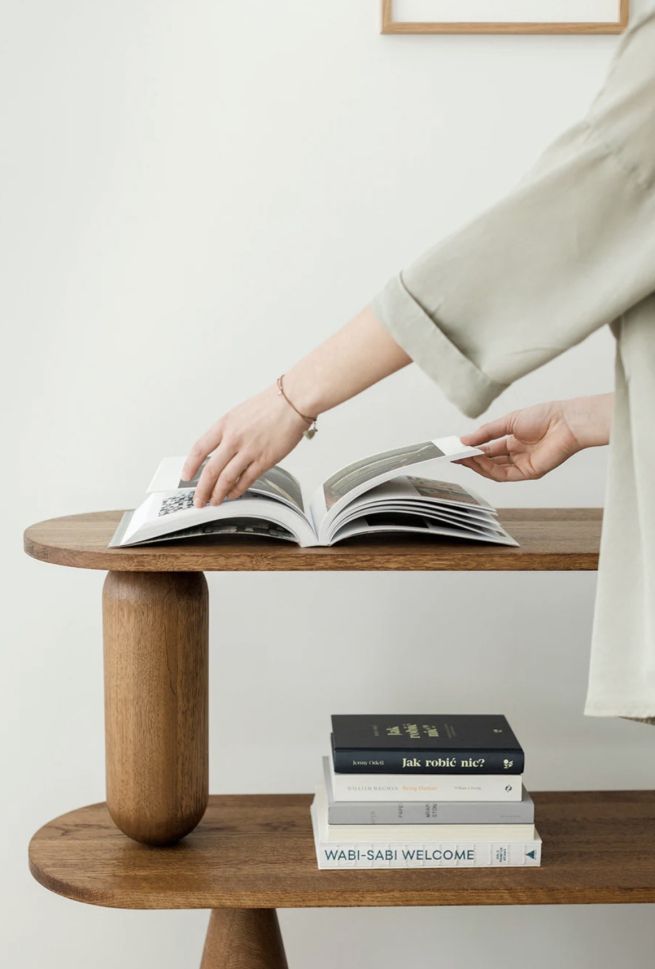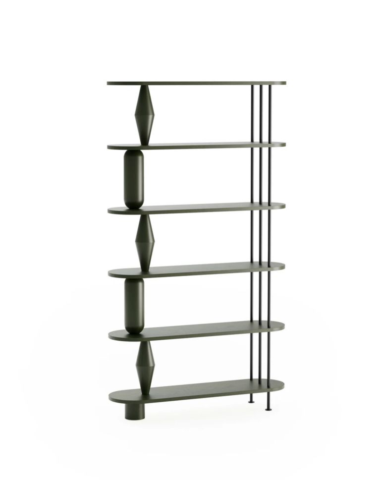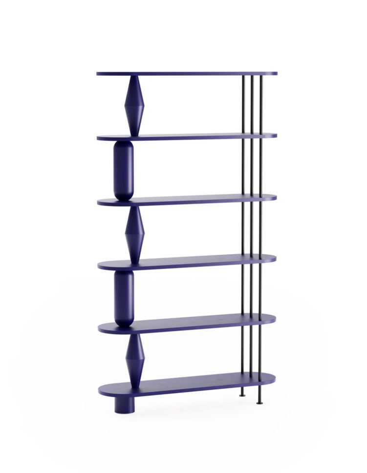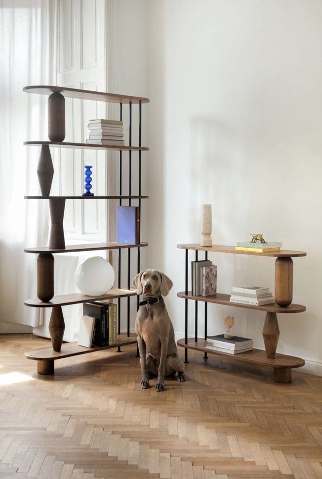 VAZOO е модулна система от рафтове, изградена около отличителни, струговани форми, напомнящи вази. Тези скулптурни елементи поддържат рафтовете, като същевременно добавят смел визуален акцент към цялостния дизайн. За да се създаде контраст и усещане за лекота, се използват прахово боядисани стоманени пръти като фини, ажурни детайли, които компенсират масивността на дървените компоненти. Модулният характер на VAZOO позволява гъвкава конфигурация - броят на рафтовете може да се регулира според индивидуалните нужди, което я прави универсално решение както за жилищен, така и за търговски интериор.
