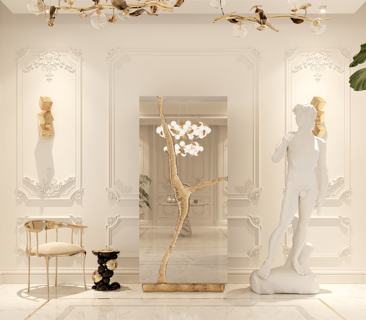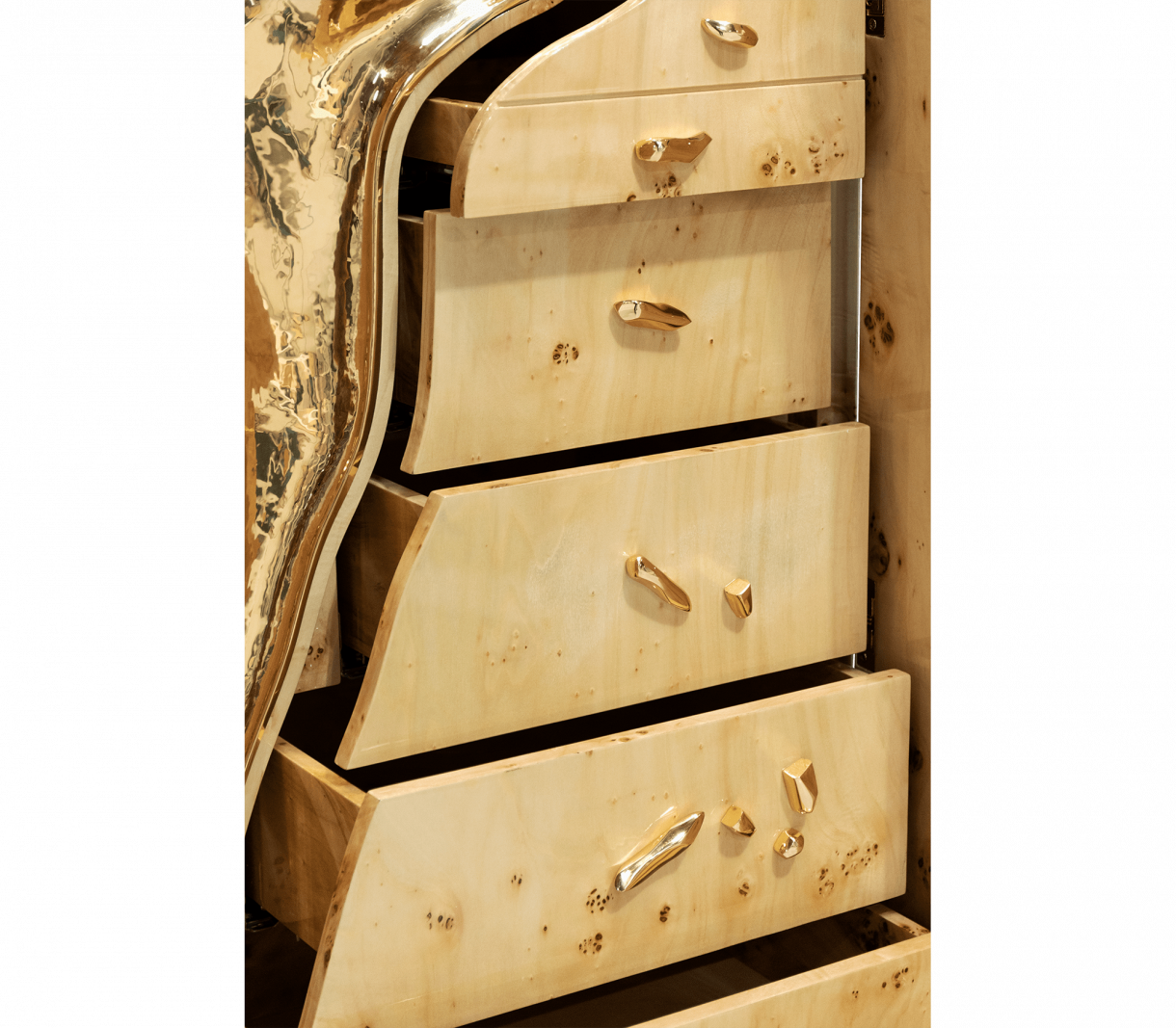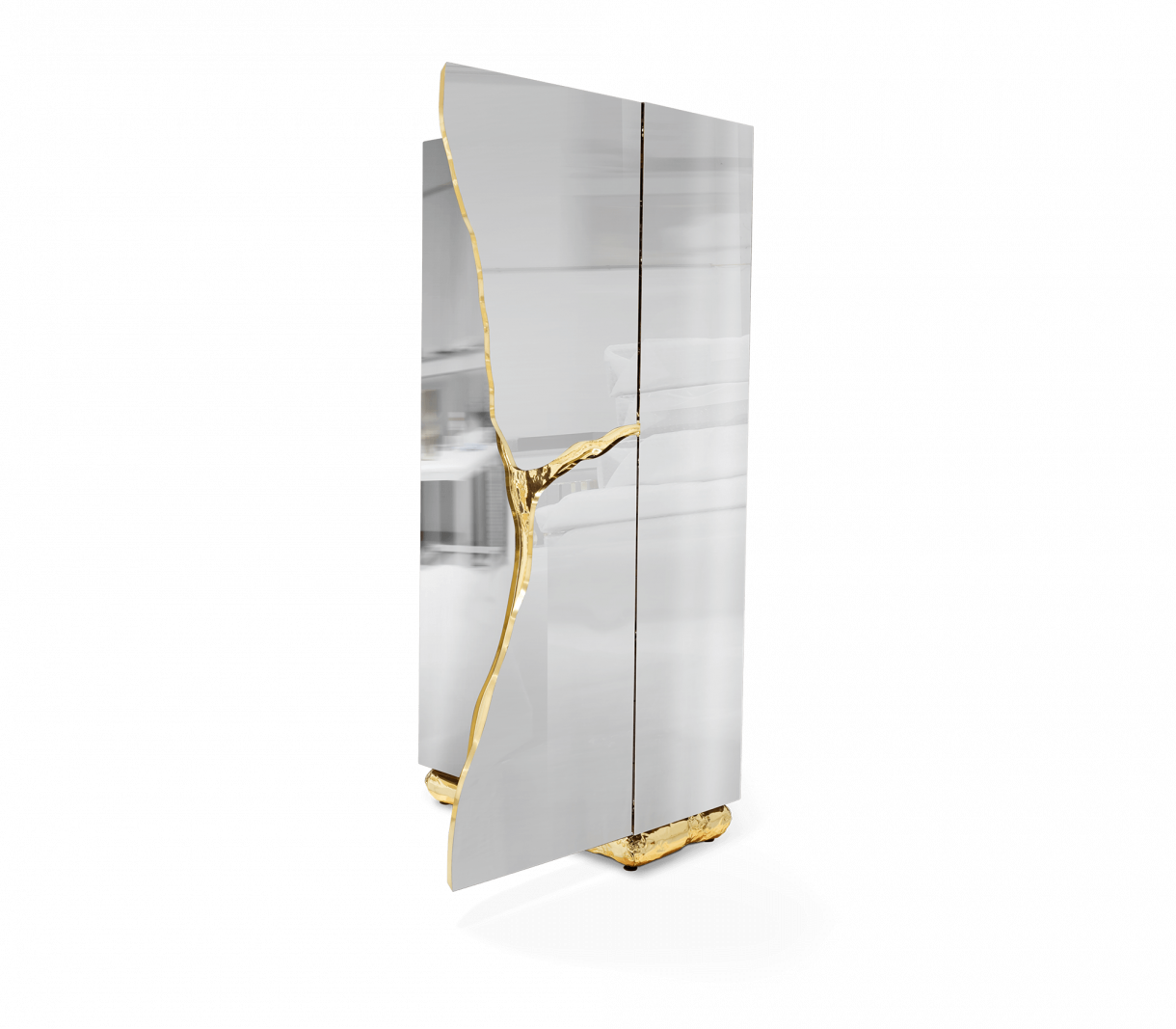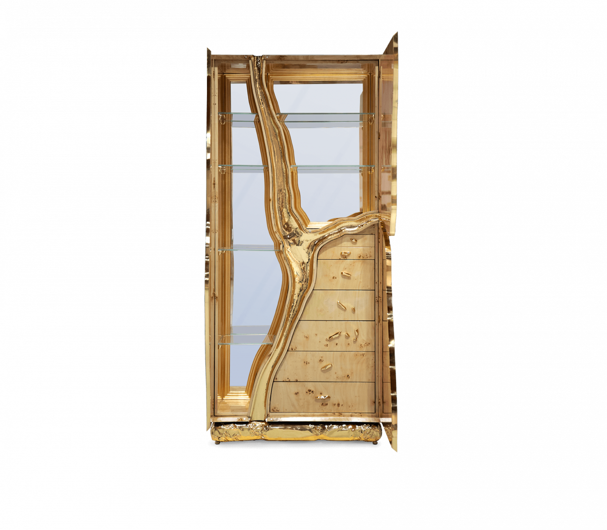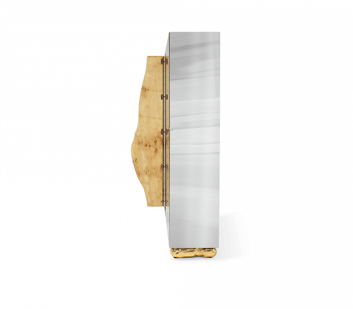 МАТЕРИАЛИ И ПОКРИТИЯ Неръждаема стомана, златисто покритие от топола и полиран месинг. W 91 CM | D 46 CM | H 203 CM W 35.8 IN | D 18.1 IN | H 79.9 IN