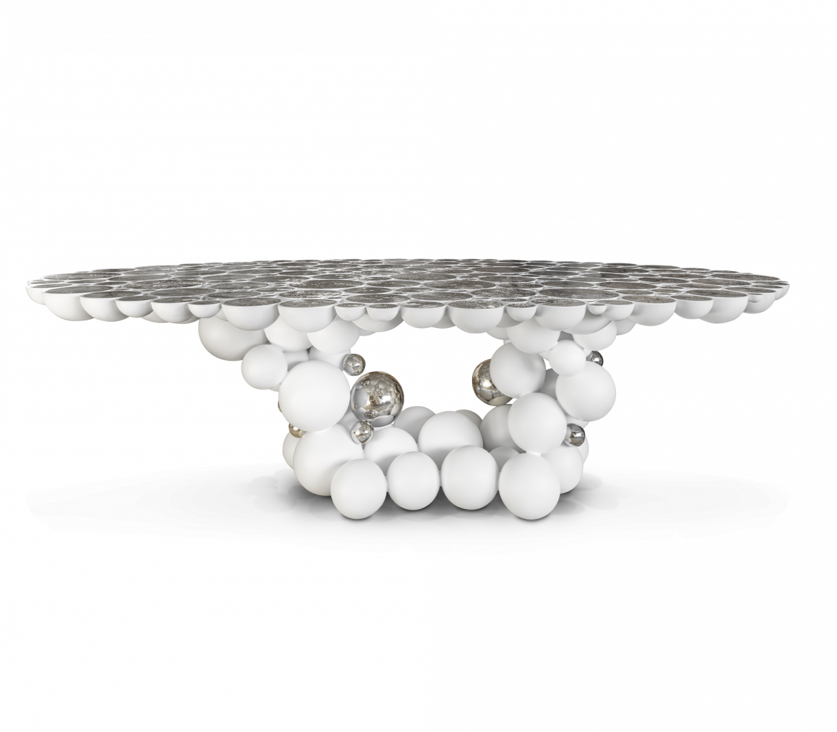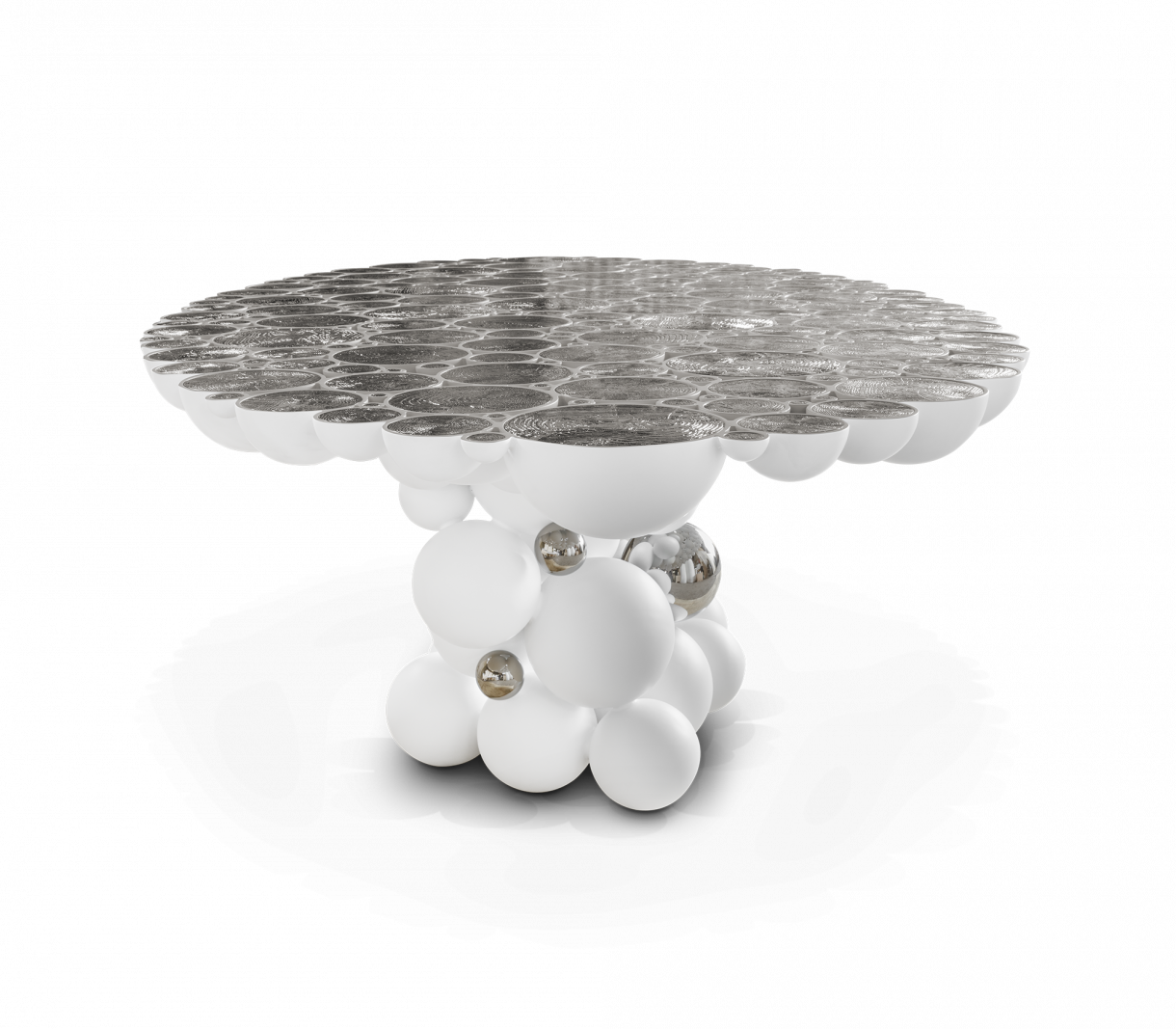 Изработен от месингови сфери, съединени за създаване на изключителен модел и структура, завършени в Бял лак и сребърен цвят