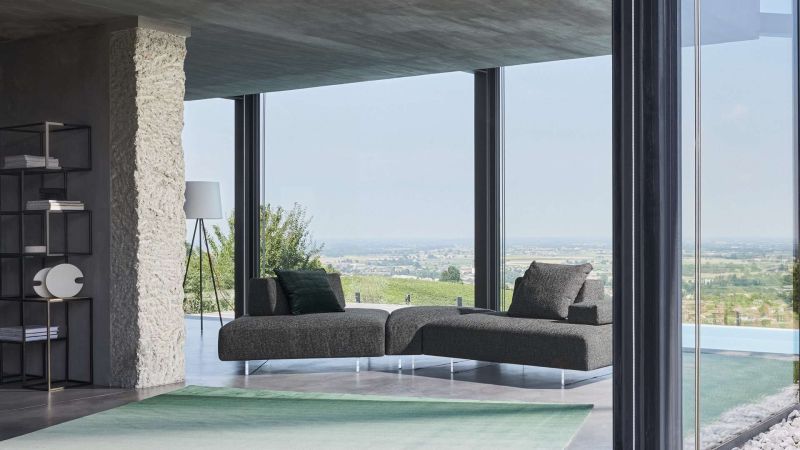 Конфигурацията на този диван е напълно гъвкава, благодарение на подложките и възглавниците, които могат да се променят според ситуациите или просто според вкуса. Има Авеню за сам човек, едно за тези, които имат компания, едно за всеки, който иска да се изтегне или да се свие. Да погледнете другия в очите или да си починете срещу него.