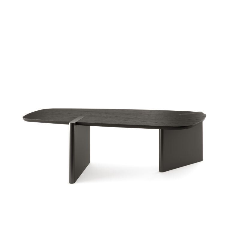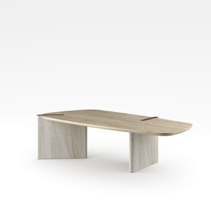 Асиметричната архитектура на масата Flatiron определя нейната идентичност, създавайки живописно присъствие със силно визуално въздействие. Плотът, характеризиращ се с леко трапецовидна форма и меки, извити ръбове, се предлага в три размера, подобрявайки гъвкавостта на маса, проектирана да се интегрира естествено в престижна жилищна среда. За да отговори на различните дизайнерски нужди, масата Flatiron се предлага в различни версии: Mono Material, с дървен плот и основа за изключително хармонична цялостна визия, или Double Material с мраморна основа, която елегантно пасва на дървения плот. Друг вариант е Free Combination, който позволява свободно съчетаване на материалите на дървения плот и лакираната дървена основа в оловни и бронзови тонове.