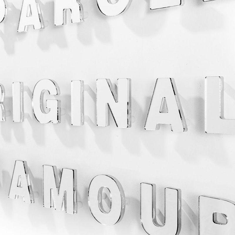 SMS shortmessages_toutcourt игра с думи, само за да кажа „Обичам те“, тази къща не е хотел, мисли и думи... нещо като „Направи си сам“ за рисуване, композиране на закачалка за дрехи, винаги различна... сякаш всеки иска да напише името си или всичко останало. Индивидуални букви от метакрилат за закрепване на стената