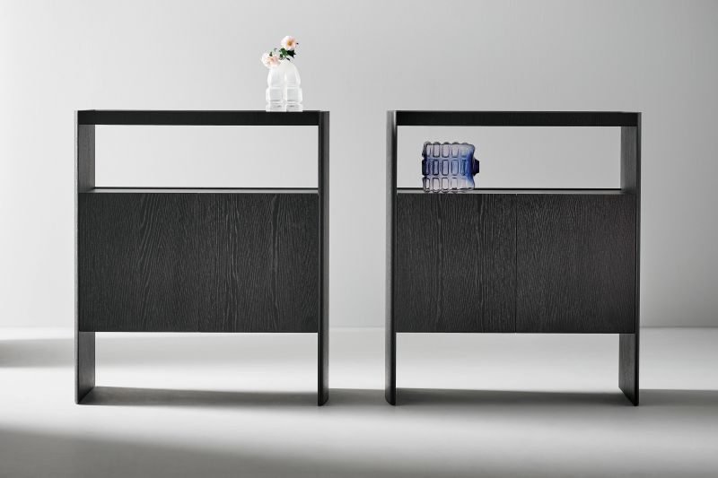 Бюфетите Alicanto се предлагат в два варианта: хоризонтален вариант с четири врати и вертикален вариант с две врати и отворен горен модул, проектирани да се използват поотделно или в комбинация в координирани композиции. Различните височини определят отчетливи пропорции и характери: в хоризонталния вариант (предлага се в две височини, Alicanto и Alicanto midi), обемът се развива по по-компактен начин, докато във високия вариант Alicanto отвореният горен модул подчертава вертикалността и олекотява цялостното възприятие. Елегантен и дискретен детайл, резултат от прецизен дизайнерски избор, е представен от страничните панели с лещовидна секция, които се простират до пода, за да образуват основата на изделието. Структурата на Alicanto е изработена от кафяв дъб или тъмносив дъб. Горната част може да бъде от дърво, за мономатериално покритие, или от керамика, въвеждайки изискан контраст между материалите.
