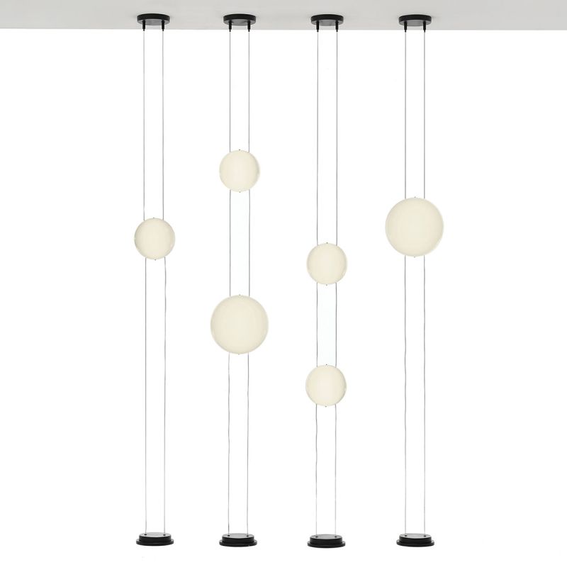 Таванна лампа с дифузна светлина. Сферичният дифузер се плъзга по успоредни кабели, които го пресичат като релси, свързани от земята към тавана. Липсата на захранващ кабел прави дизайна на Orbita изключително изчистен и есенциален. Подобно на изгрева и залязването на слънцето, лампата Orbita може да се регулира по височина и интензитет на светлината, за да се създадат различни светлинни сценарии.
