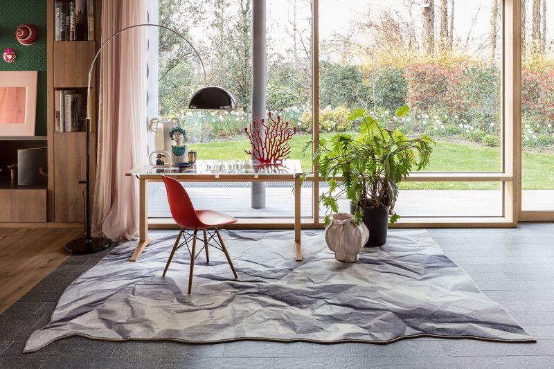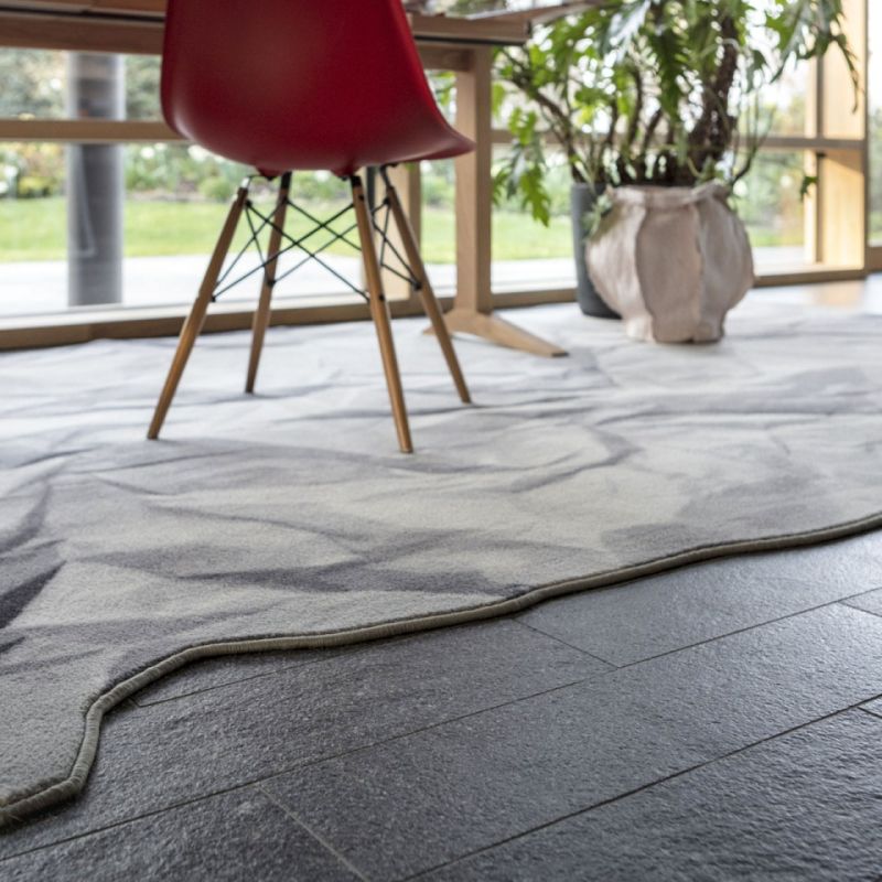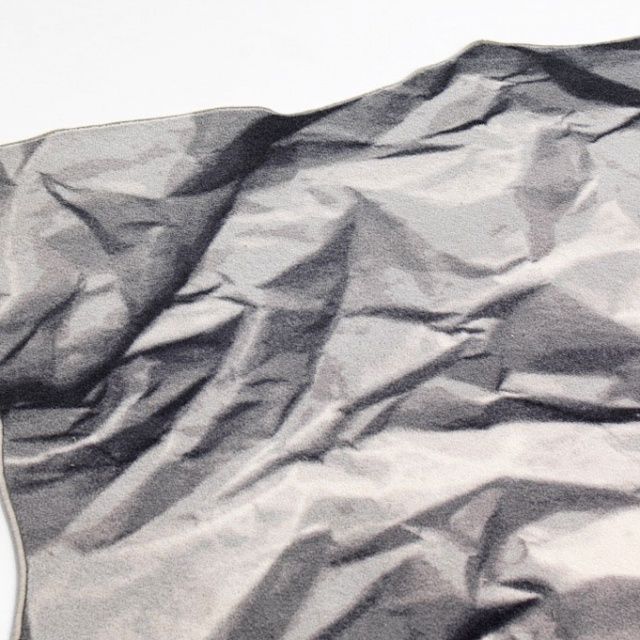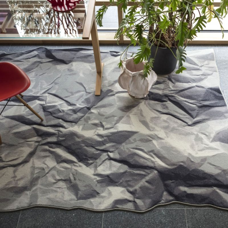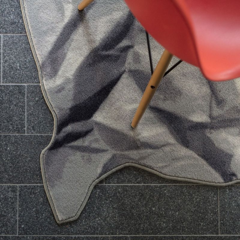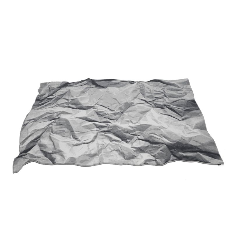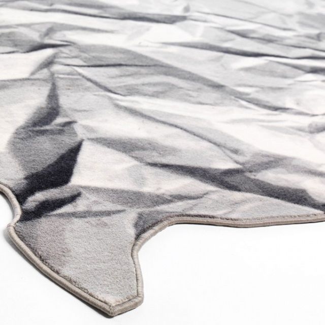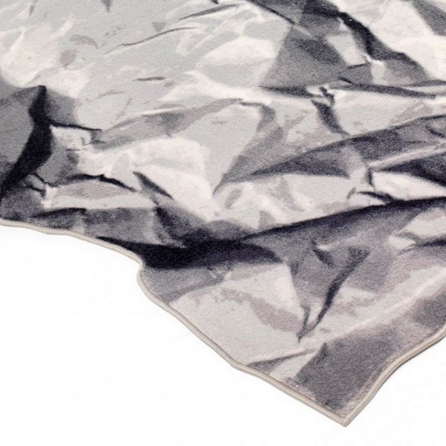 Neversaid е килим, изработен от 80% вълна и 20% полиамид, с щампа и равен ръб. Представлява смачкан и отново отворен лист хартия.