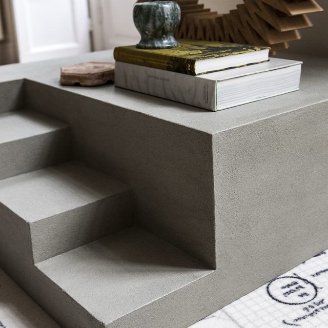 Това е монолитна скулптурна маса, която е изключително семпла и линейна, но с добавяне на елемент, който смекчава строгостта и твърдостта на обекта: това е поредица от стъпала, които насочват вниманието към света на архитектурата, като напомнят за стълбите на сгради и паметници и стъпалата, водещи към вратата на къща.