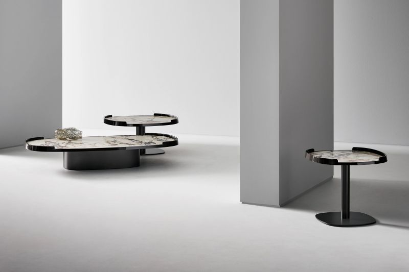 Gem е семейство масички за кафе, предназначени да създават динамични и гъвкави композиции: благодарение на разнообразието от форми, основи, размери, височини, материали и покрития, Gem позволява постоянно променящи се комбинации. Плотът, предлаган в стъкло или керамика в широка гама от опции, е подчертан от тънка периметърна рамка от гланцово лакирано дърво - прецизен, дискретен, но отличителен ръб, който подчертава чистотата на формата и откроява материала. Металната конструкция допълнително подобрява дизайна чрез две различни комбинации с плота: основата с бронзово покритие е съчетана с гланцово лакиран дървен кант в гланцово кафяво, докато основата с оловно покритие е комбинирана с гланцово лакиран дървен кант в гланцово сиво, създавайки изискани и хармонични двойки.