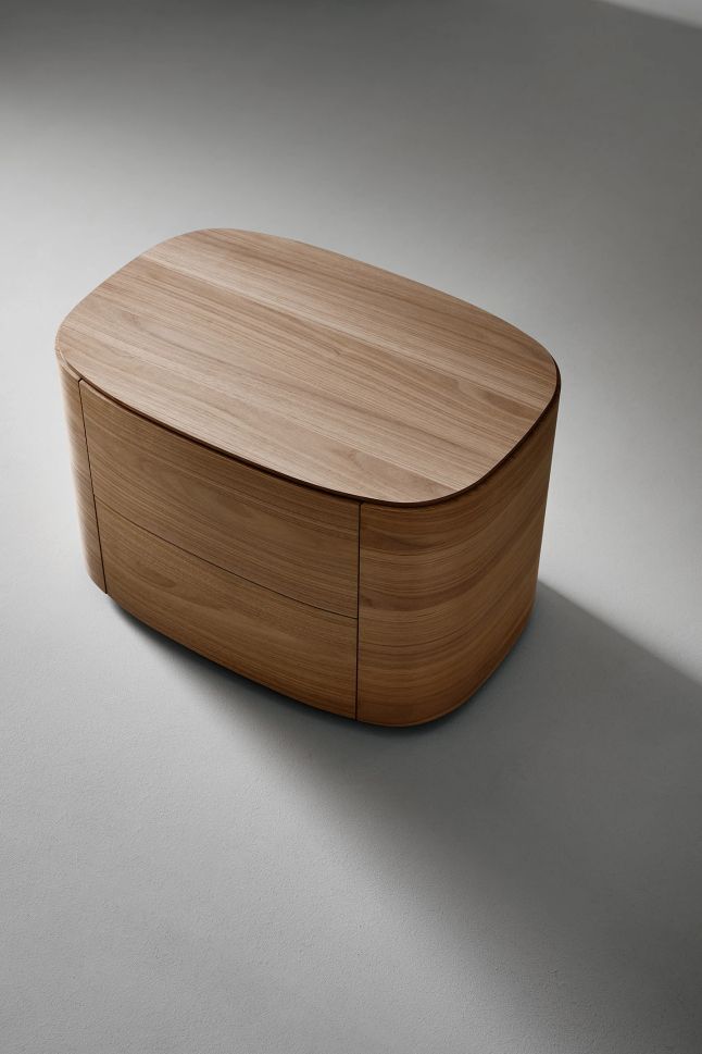 За зоната за спане, Габриеле и Оскар Бурати представят нощното шкафче Isabey. Дизайнът се предлага в два варианта, с едно или две чекмеджета, като и двата варианта се отличават с правоъгълен плот със заоблени ъгли и използване на извита дървесина в цветовете орех Каналето, кафяв дъб и дъб с въглен - тонове, които спомагат за създаването на топла и интимна атмосфера, особено подходяща за спалнята. Двата варианта се отличават с различното съотношение между обемите и изпъкналостта на основата. При варианта с две чекмеджета обемът е плътен и предлага по-голям капацитет за съхранение. При варианта с едно чекмедже металната основа става по-изпъкнала, съставена от два близко разположени тръбни елемента, които напомнят за сдвоената колона от класическата архитектура.