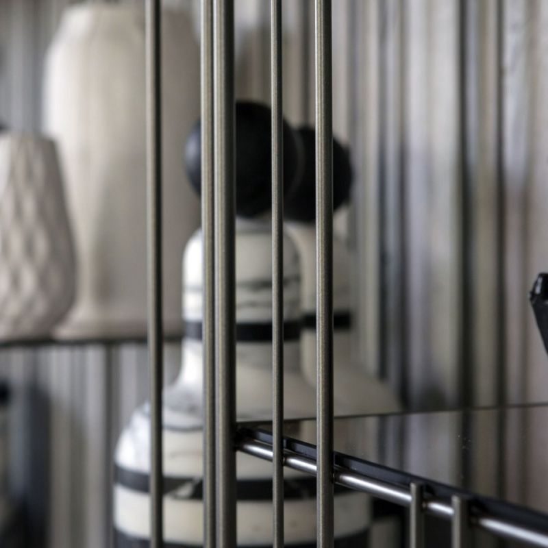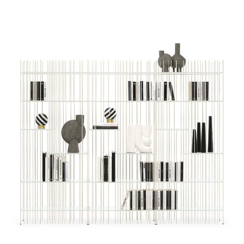 Metrica е метална библиотека, предлагана в титаниево, полирано и златно покритие, с прозрачни кристални рафтове, предлагани в бронз или зелено. Структурата е семпла, ритъмът е маркиран от железни пръти, фиксирани на различни интервали върху открито строга структура, в която книгите и предметите, поставени в нея, допълват формата, като от време на време изписват нови композиции.