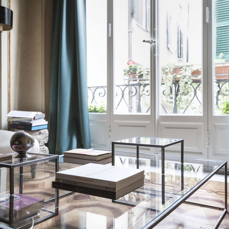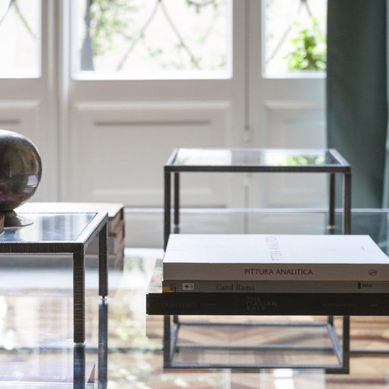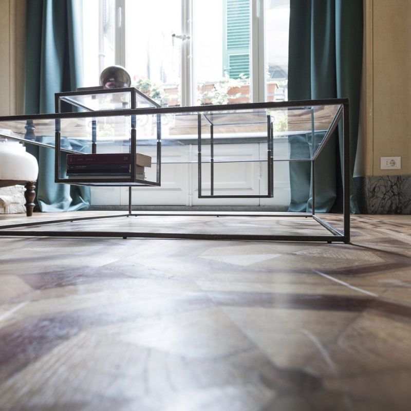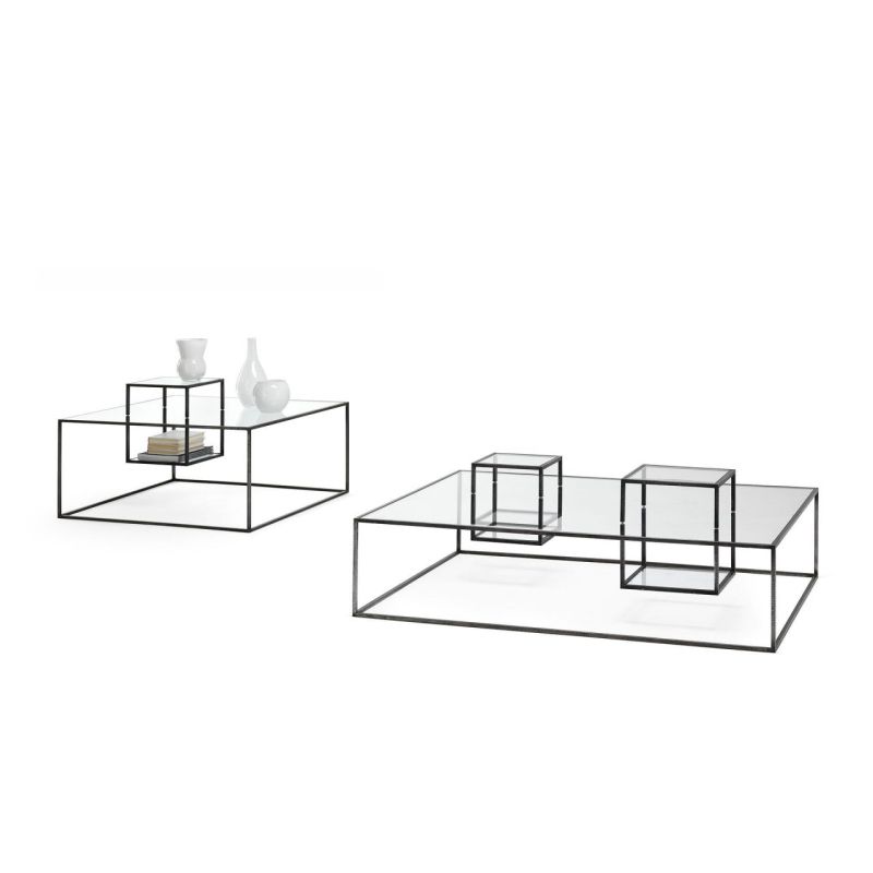 Illusioni е масичка за кафе с черна желязна конструкция и прозрачни кристални плотове. Обемите сякаш се колебаят, сякаш при липса на гравитация; стройната структура установява своята лека и есенциална линия.
