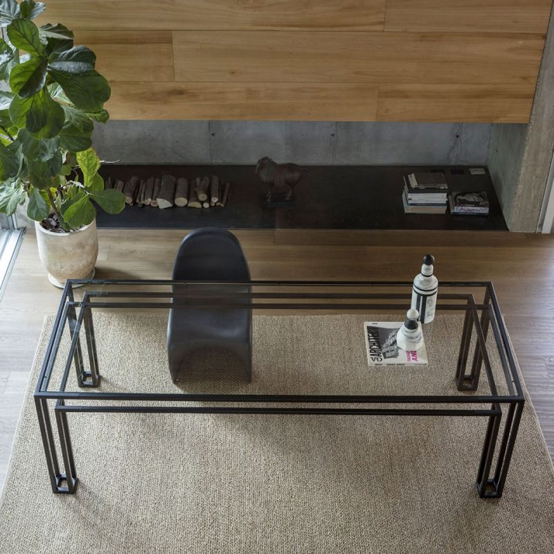Hotline е маса с метална рамка и стъклен плот. Конструкцията се предлага в черно или патиниран бронз; плотът се предлага в прозрачно стъкло, прозрачно черно стъкло или прозрачно бронзово стъкло.